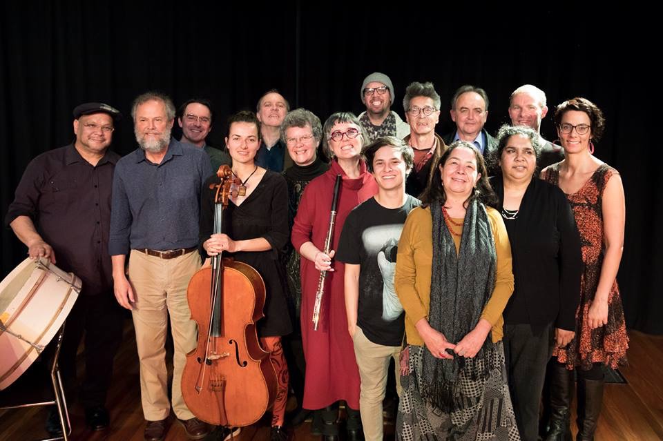 As Australia comes to terms with COVID-19 protocols, musicians and composers are working out how to “do” music online. This photo of the first Ngarra Burria concert at Eora Aboriginal College in 2017, shows how Australian Indigenous and immigrant origin musicians (Claire Edwardes, Ensemble Offspring, and the five inaugural Ngarra Burria Indigenous composers Rhyan Clapham, Brenda Gifford, Troy Russell, Tim Gray and myself) work together, in close proximity, to make music. But it is also possible, as demonstrated by the brilliant Lux Aeterna virtual choir a few years back, to gather in virtual spaces to make music effectively. The current COVID-19 crisis requires musicians and composers to engage in safe online collaboration, and restricts live performances.